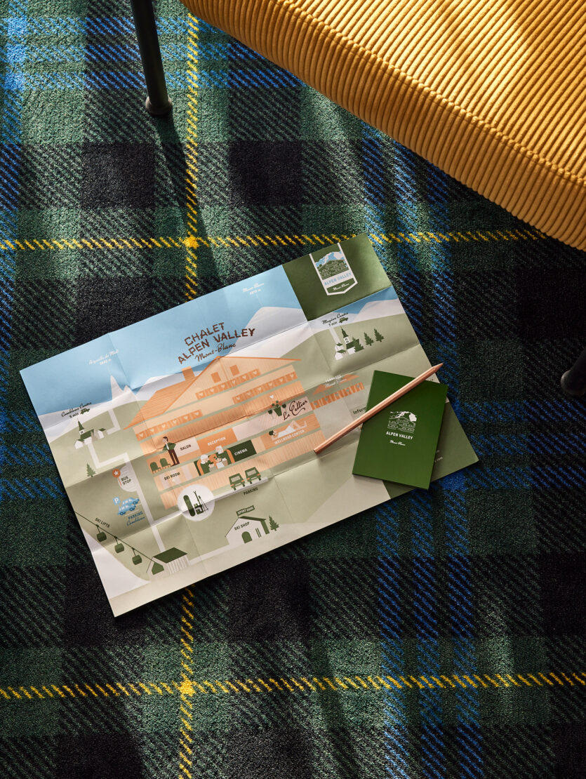 Pour sublimer l’expérience sur place et renforcer l’identité du lieu, MIC[e] est intervenu sur des piliers concrets: F&B, signalétique, graphisme, objets avec une ambition : sublimer les codes de la maison de montagne en toute simplicité.