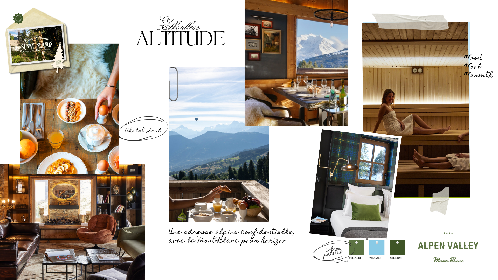 Niché face au Mont-Blanc, le Chalet Alpen Valley incarne l’alliance entre l’esprit refuge et l’hôtellerie contemporaine. Un panorama exceptionnel, une atmosphère chaleureuse et une hospitalité pensée comme à la maison : ici, le luxe est simple, incarné, accessible.