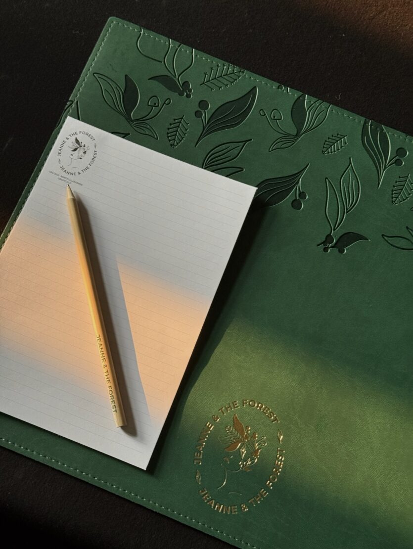 Des illustrations linéaires, des textures végétales, des teintes inspirées de la forêt à l’automne. Chaque pièce communique avec délicatesse l’univers de Jeanne & The Forest. Des tote bags à la papeterie, en passant par la signalétique et les pantoufles, MIC[E] donne corps à Jeanne dans chaque détail du quotidien.